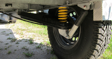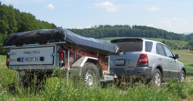 Frank kam uns entgegen und stellte uns über Auffahrt sein Vorführmodell, einen offroadfähigen Anhänger mit Einzelradaufhängung, zur Verfügung. Nach einem