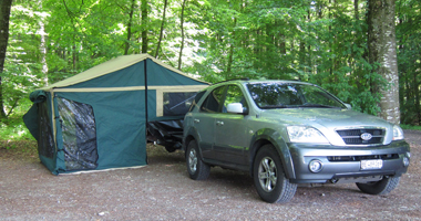dem Sorento nach und ist kaum bemerkbar. Die Dimensionen sind sehr praktisch. Durch das Heckfenster und die normalen Fahrzeugspiegel ist freie Sicht nach hinten gewährleistet. Wo der Sorento durchpasst, hat es auch für den Sandfire Platz.