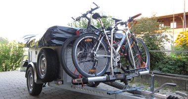 Auf der langen Deichsel ist es problemlos Fahrräder mitzuführen. Die Stützlast beträgt ab Werk 100 kg. So fällt lästiges