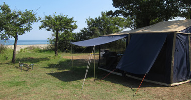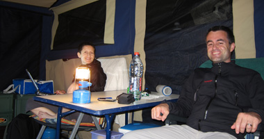 und in weniger als zehn Minuten stand das Hauptzelt. |