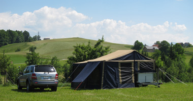Endlich ging es dann über Auffahrt für ein paar Tage nach Morges und wir konnten die ersten Nächte in einem Camper Trailer verbringen. Das komfortable grosse Bett, das super Raumklima, der Stauraum unterhalb der Zeltplatform