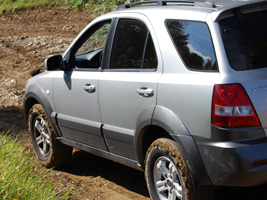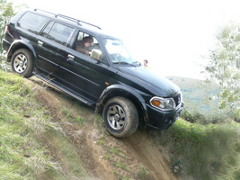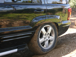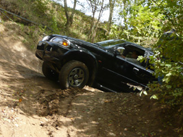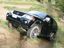 Die Trittbretter des Pajero sind recht stabil. Auf der einen Seite schützen sie die Schweller vor Schäden bei Aufsetzern, auf der