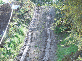 Die Spurrinnen in der steilen Auffahrt auf den Hügel waren tief und rutschig. Es hiess also, die richtige Linie zu erwischen und ohne Aufsetzer in einem